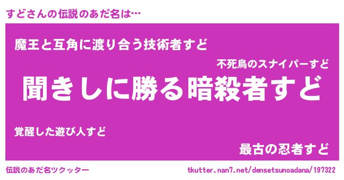 | ヒーロー風カッコイイあだ名 | 『仮面スドダー』『究極戦士スド』 |