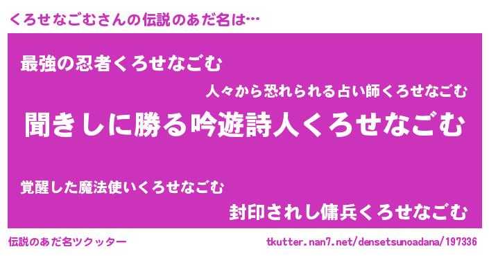 | 意味不明あだ名 | 『永久保存くろせなごむ』 |