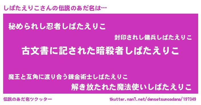 | 意味不明あだ名 | 『永久保存しばたえりこ』 |