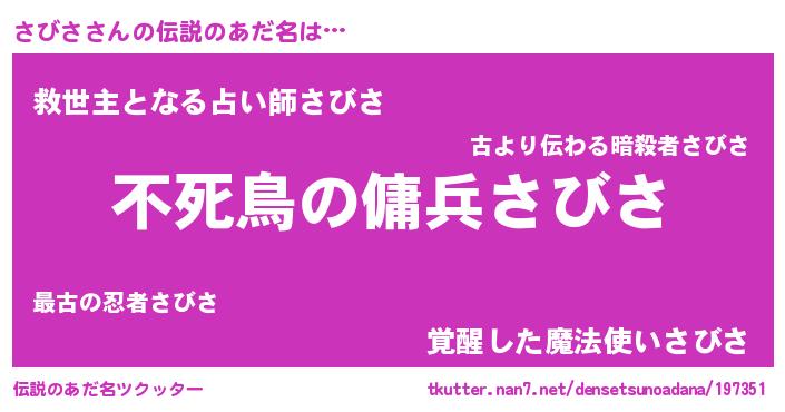 | 胡散臭い通販商品みたいなあだ名 | 『モテモテ間違いなし水晶球…その名も「さびさ」』 |
