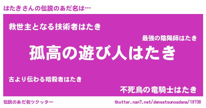 | ヒーロー風カッコイイあだ名 | 『暗黒騎士ハタ』『慈愛の使者はたき』 |