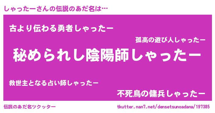 | 意味不明あだ名 | 『住所不定無職しゃったー(93歳)』 |