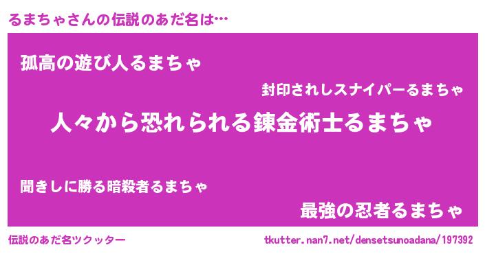 | ヒーロー風カッコイイあだ名 | 『友情の使者るまちゃ』『黄金騎士ルマ』 |