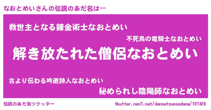 | 意味不明あだ名 | 『住所不定無職なおとめい(39歳)』 |