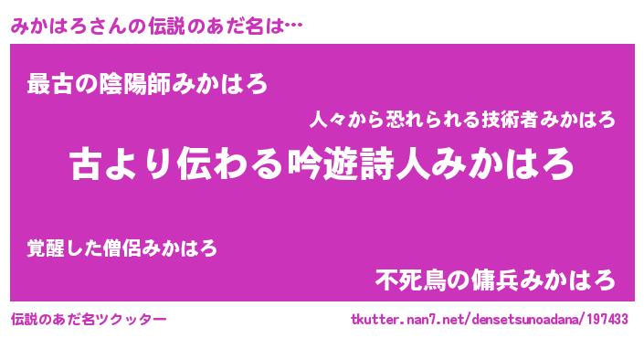 | ヒーロー風カッコイイあだ名 | 『ネオミカハロ』『仮面ミカダー』 |