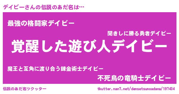 | 男性向けラノベタイトル風あだ名 | 『Re:デイビーから始める異世界生活』 |