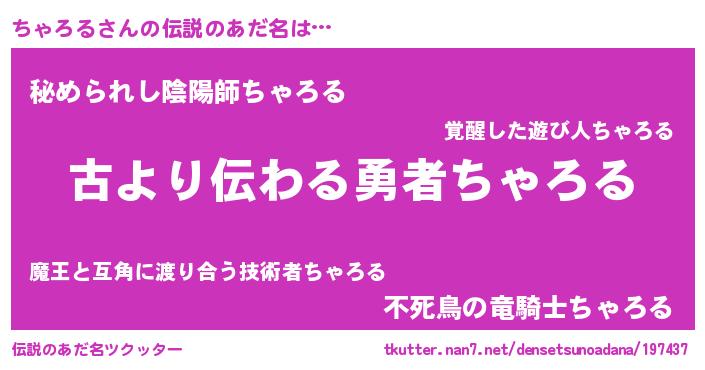 | ヒーロー風カッコイイあだ名 | 『ネオチャロル』『ウルトラちゃろるマン』 |