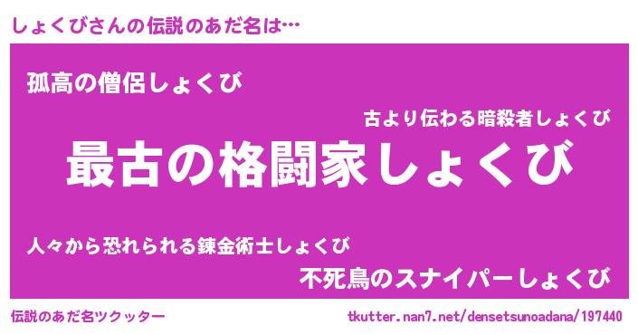 | 意味不明あだ名 | 『しょくびフォーエバー』 |