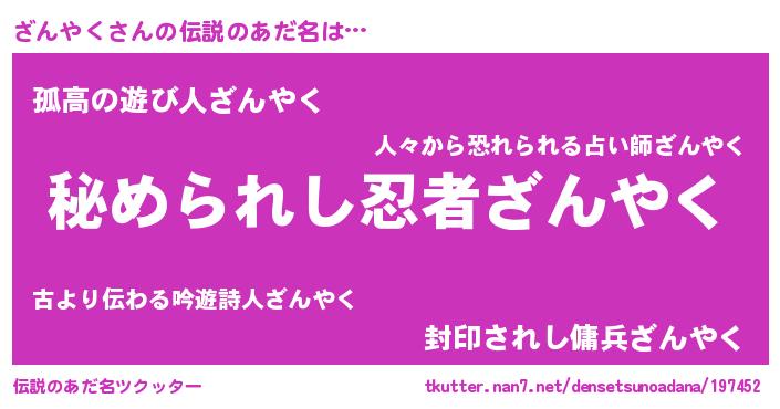 | 意味不明あだ名 | 『ざんやくフォーエバー』 |