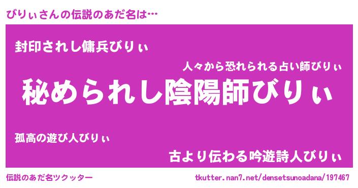 | 自動車の名前っぽいあだ名 | 『ビクア』『ビリティマ』『デミビ』 |