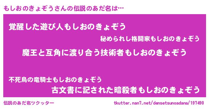 | ヒーロー風カッコイイあだ名 | 『仮面モシダー』『炎刃騎士モシ』 |