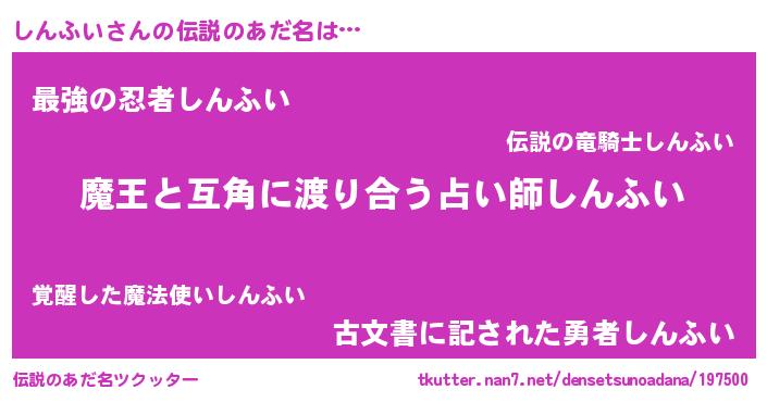 | ヒーロー風カッコイイあだ名 | 『愛の使者しんふい』『ネオシンフイ』 |