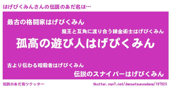 | 男性向けラノベタイトル風あだ名 | 『ダンジョンにはげぴくみんを求めるのは間違っているだろうか』 |