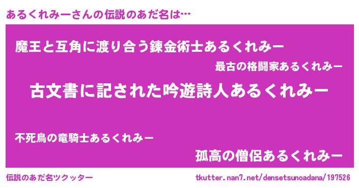 | 肩書あだ名 | 『あるくれみー先生』『あるくれみー機長』 |