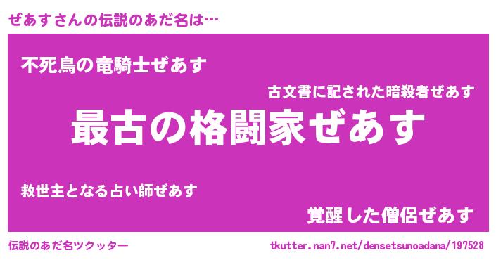 | ヒーロー風カッコイイあだ名 | 『仮面ゼアダー』『ウルトラぜあすマン』 |