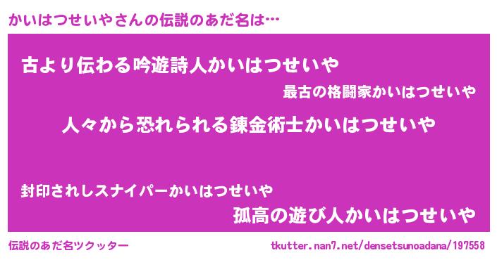 | ヘコむあだ名 | 『かいはつせいや(遠い目)』『かいを』 |
