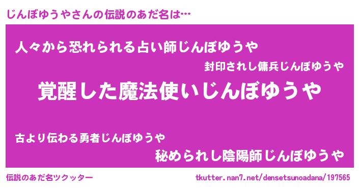 | 男性向けラノベタイトル風あだ名 | 『じんぼゆうやの嫁は女の子じゃないと思った?』 |