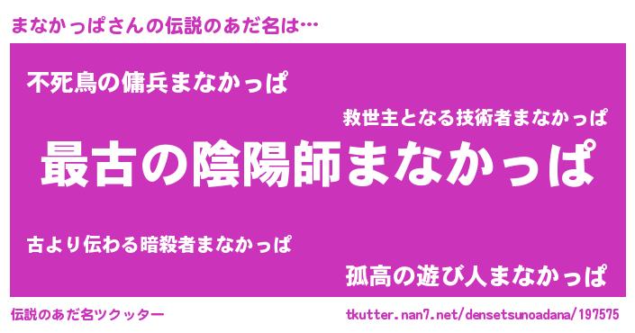 | ヒーロー風カッコイイあだ名 | 『ウルトラまなかっぱマン』 |