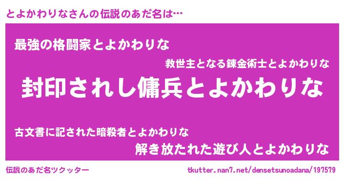| 胡散臭い通販商品みたいなあだ名 | 『億万長者になれる水晶球…その名も「とよかわりな」』 |