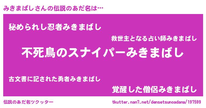 | 胡散臭い通販商品みたいなあだ名 | 『モテモテ間違いなし霊験あらたかなお札…その名も「みきまばし」』 |