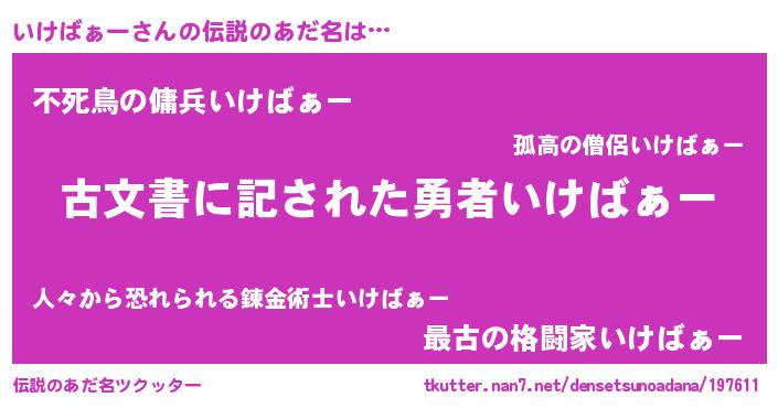 | ヘコむあだ名 | 『いけばぁー(震え声)』『いけっふぃ~』 |