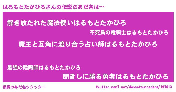 | 女子向けラノベタイトル風あだ名 | 『はるもとたかひろ恋絵巻』 |