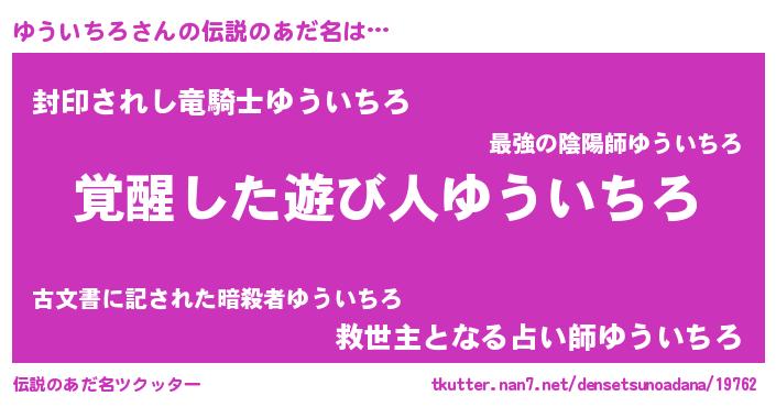 | ポケモン風あだ名 | 『ユウゴンZ』『ヒユウイチロ』 |