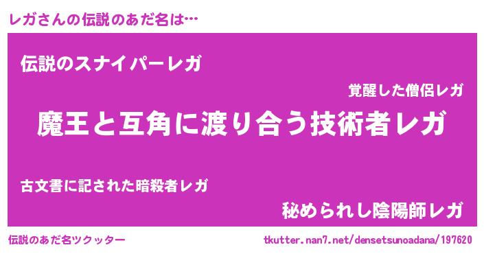 | 男性向けラノベタイトル風あだ名 | 『魔弾の王とレガ』『魔法科高校のレガ』 |