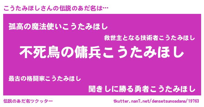 | 意味不明あだ名 | 『住所不定無職こうたみほし(62歳)』 |