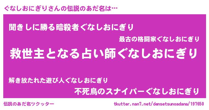 | ヒーロー風カッコイイあだ名 | 『慈愛の使者ぐなしおにぎり』 |