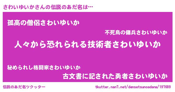 | 意味不明あだ名 | 『自称さわいゆいか』 |