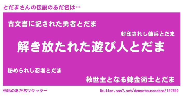 | 意味不明あだ名 | 『とにかく怪しいとだま』『自称とだま』 |