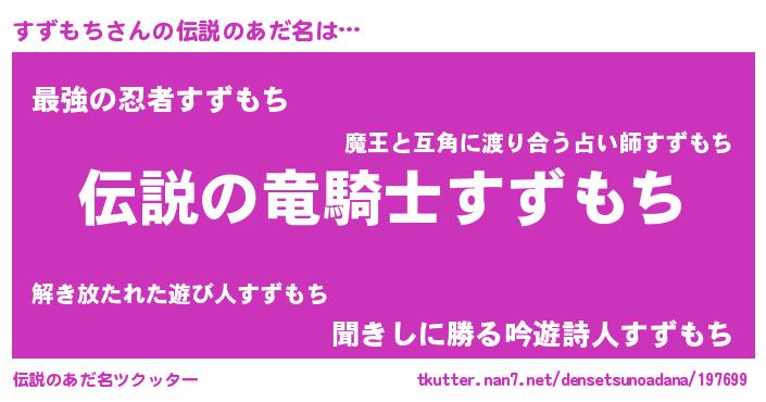 | ファンタジー風あだ名 | 『スズフェル』『エターナルスズモチー』 |