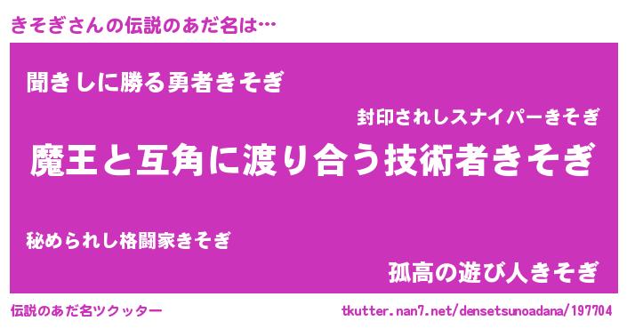 | ヒーロー風カッコイイあだ名 | 『愛の使者きそぎ』『ネオキソギ』 |