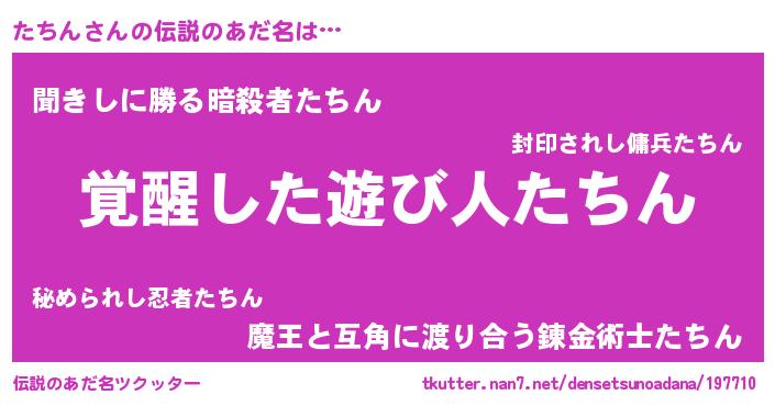 | 意味不明あだ名 | 『とにかく怪しいたちん』『自称たちん』 |