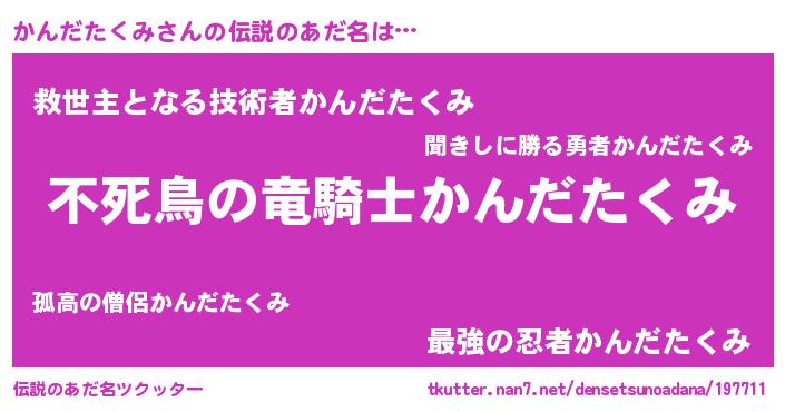 | 女子向けラノベタイトル風あだ名 | 『かんだたくみ姫と円卓の騎士』 |