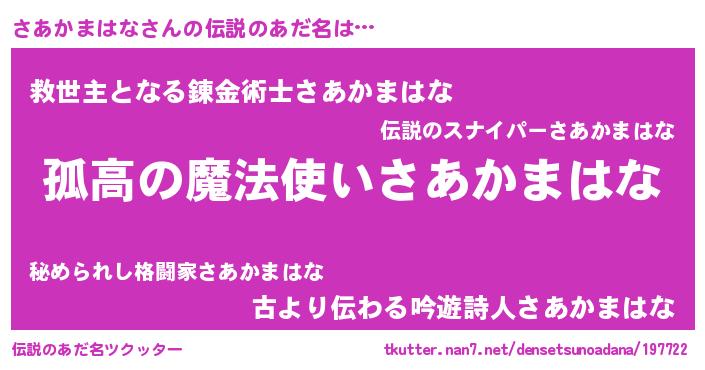 | 胡散臭い通販商品みたいなあだ名 | 『信頼と実績のサプリメント…その名も「さあかまはな」』 |