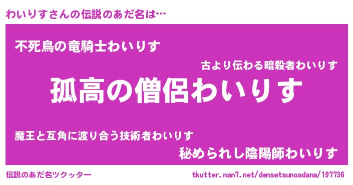 | ヒーロー風カッコイイあだ名 | 『黄金騎士ワイ』『スーパーワイリス』 |
