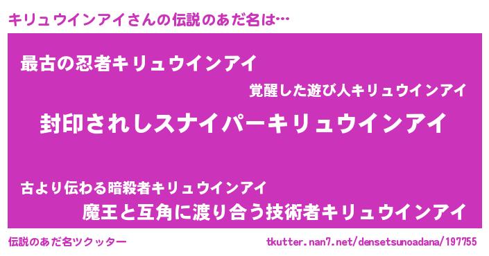| 恥ずかしいあだ名 | 『プリティーキリュウインアイ』 |