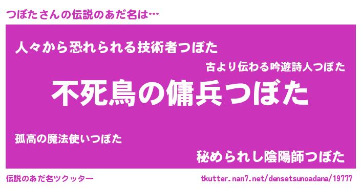 | ヒーロー風カッコイイあだ名 | 『スーパーツボタ』『慈愛の使者つぼた』 |
