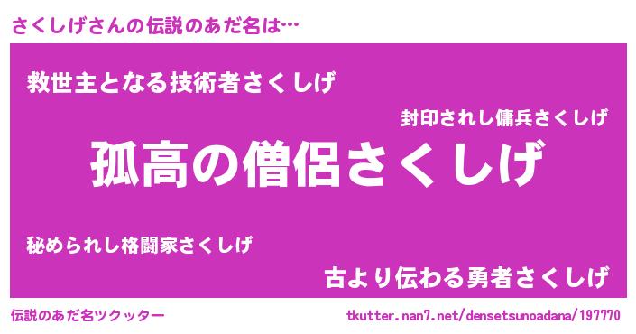 | 胡散臭い通販商品みたいなあだ名 | 『ガンによく効くアガリクス…その名も「さくしげ」』 |