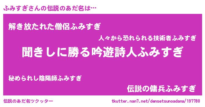 | ヘコむあだ名 | 『ふみすぎ(小並感)』『ふみを』 |