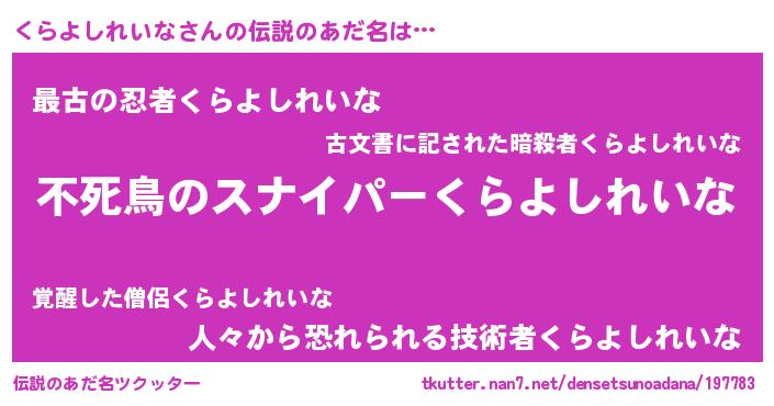 | 女子向けラノベタイトル風あだ名 | 『くらよしれいな姫と円卓の騎士』 |