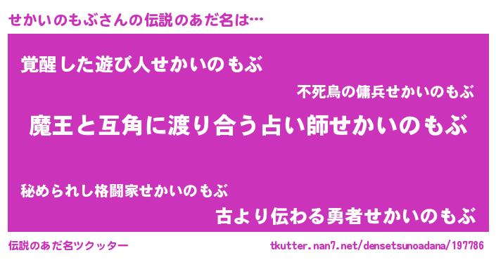 | 意味不明あだ名 | 『自称せかいのもぶ』 |