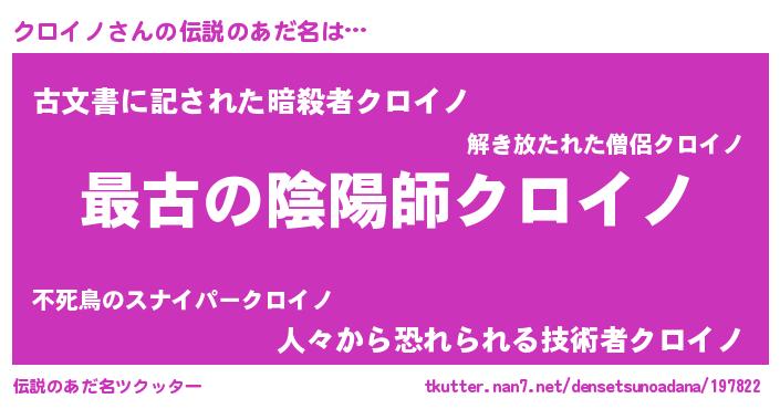 | 意味不明あだ名 | 『クロイノフォーエバー』『自称クロイノ』 |