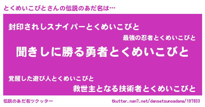 | ヒーロー風カッコイイあだ名 | 『仮面トクダー』『ネオトクメイコビト』 |