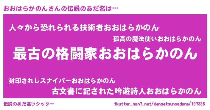 | ファンタジー風あだ名 | 『エターナルオオハラカノンー』 |