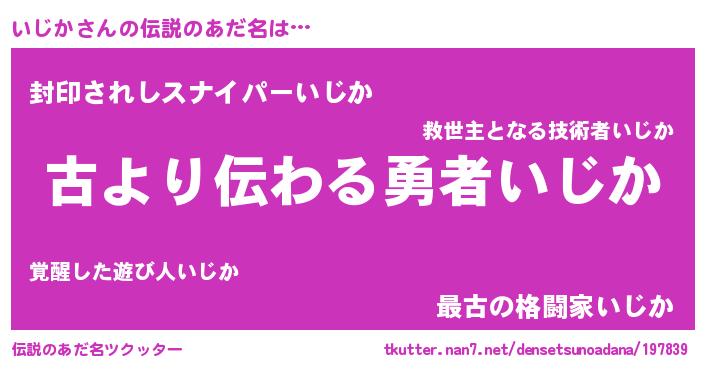 | 男性向けラノベタイトル風あだ名 | 『いじかという概念が存在しない退屈な世界 』 |