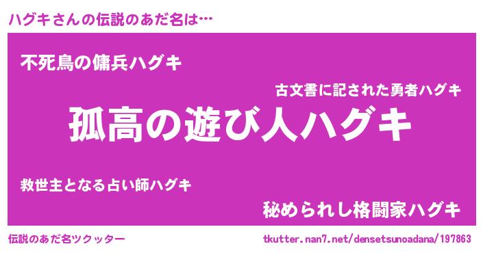 | 意味不明あだ名 | 『とにかく怪しいハグキ』『自称ハグキ』 |