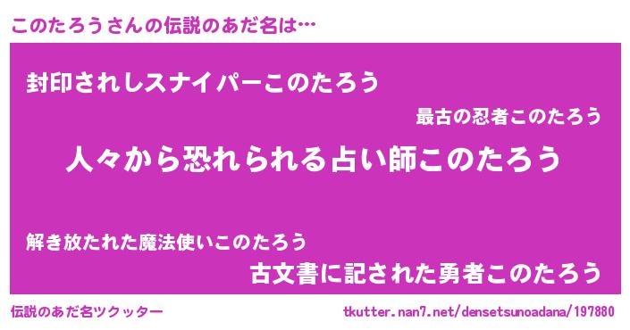 | 意味不明あだ名 | 『眠気覚ましガムこのたろう味』 |